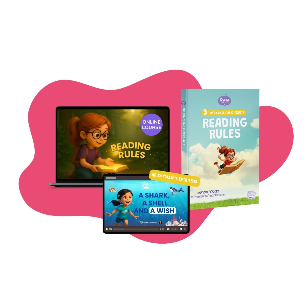 הקורס המלא “מפצחים את האנגלית 3” הוא מערכת למידה שלמה וחוויתית, שתפתח את עולם הקריאה המדויקת והשוטפת באנגלית, עם עזרים מעוצבים, עולם דיגיטלי אינטראקטיבי וליווי אישי בווצאפ – כדי שהילדים שלכם יתאהבו באנגלית ויחוו הצלחה אמיתית!